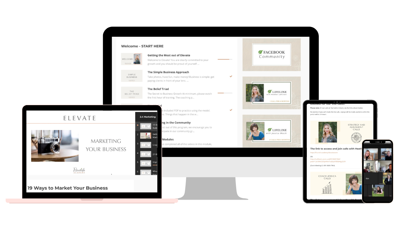 Heather has an exceptional ability to dig deep and address the root causes of what's holding you back, and the other coaches bring invaluable experience in both photography and running successful businesses. Elevate is truly a steal.