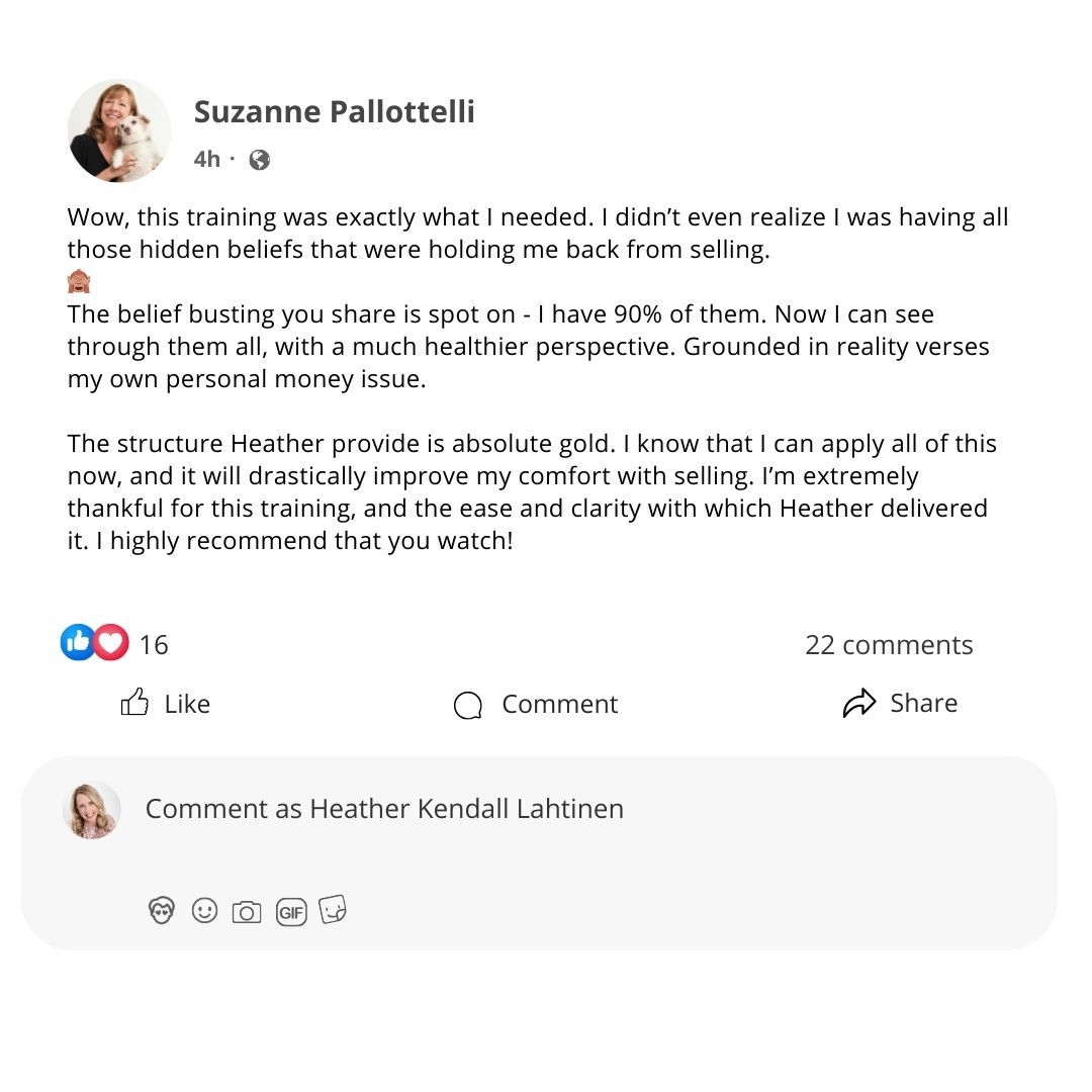 Walk away from sales conversations feeling: grounded, confident, and proud of how you showed up.